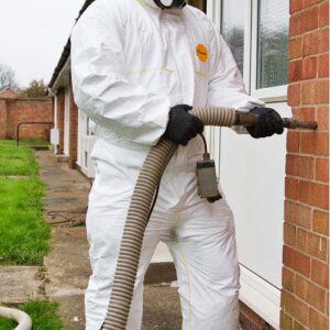 * fehér háromrétegű SMS pp, kapucnis overál, 50 g/m2