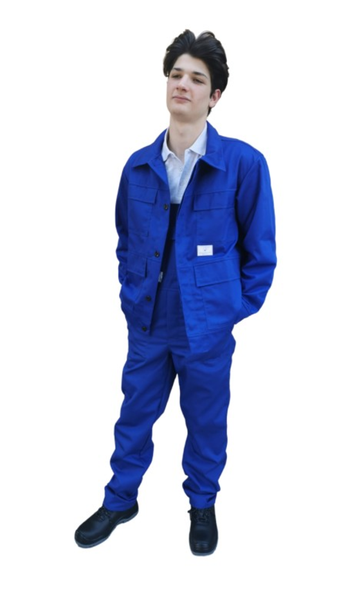 * királykék melles öltöny, 245 g/m2 kopásálló, sávoly kötésű, 65% poliészter, 35% pamut alapanyag