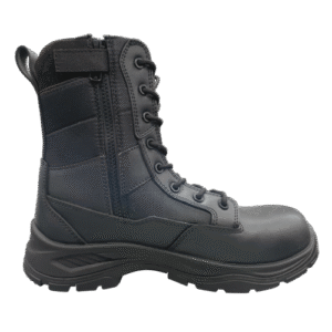 A nagy oldalsó cipzár megkönnyíti a fel- és levételt.