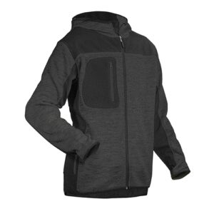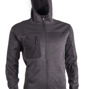 puha, kényelmes, 380g/m2 vastag kötött poliészter illetve a vállrészen, az oldalán és a kar belső részén nagy kopásállóságú három rétegből (94% poliészter + 6% elasztán + TPU membrán) álló, 330 g/m2-es Softshell anyag mikropolár béléssel