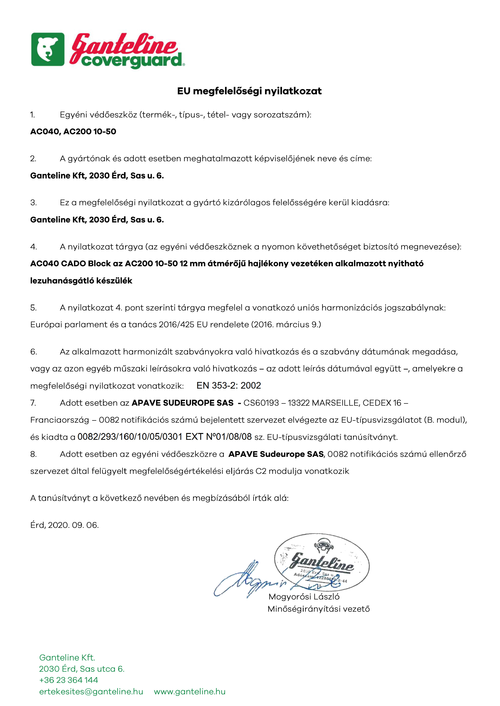* mindkét végén visszafonott, kötélszíves hurokkal, műanyag borítással, biztonsági varrással
