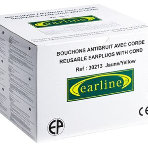 * többször használatos, mosható, sárga füldugó, lágy thermoplasztikus gumiból (TPR), levehető PVC zsinórral