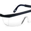 Füstszínű polikarbonát lencse, kék nejlon keret és állítható hosszúságú, nejlon szár, egybeépített oldalvédelem. Gazdaságos modell