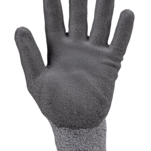 HDPA-val és elasztánnal erősített 13-mas fonású kesztyű, szürke poliuretán mártott tenyérrel, fonott csuklórésszel
