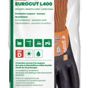 Narancssárga varrás nélküli 13-mas kötésű kesztyű HDPE-vel, poliészterrel és elasztánnal erősítve.