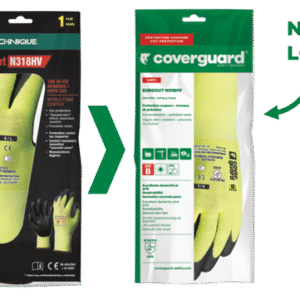 18-as kötésű, varrás nélküli, fluo sárga színű, vágásbiztos HPPE + nylon + elasztán védőkesztyű,