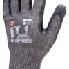 * maximális szakítás- és kopásállóságú, D színtű TDM vágásbiztosságú, 13-as kötésű, szürke, multiszálas (HPPE, ásványi szálak. PA és elasztán) védőkesztyű szellőző kézhát, gumírozott mandzsetta