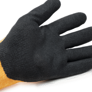 EUROHEAT DEX kesztyű, narancssárga varrat nélküli kötött, 10-es, poliészter és aramid alap, hurkolt belső, homokos felületű nitril tenyérbevonat, kötött csukló.