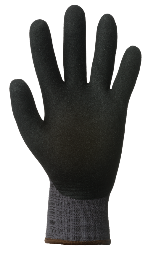 Duplán, nitrillel mártott tenyér: egy réteg sima, egy réteg érdesített.