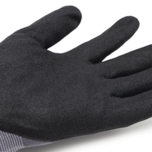 EUROLITE MAX25 kesztyű, 15-ös kötésű szürke poliamid védőkesztyű, tenyérén fekete sandy nitrillel mártva.