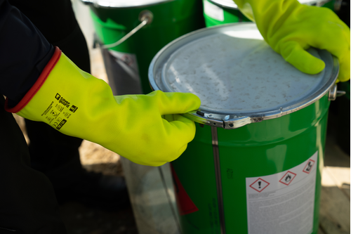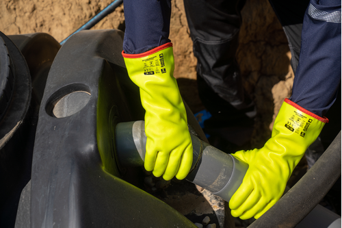 Végig mártva sárga PVC-vel és a tenyerén csúszásbiztos szemcsés bevonat