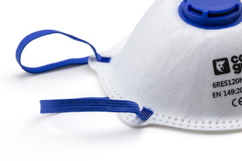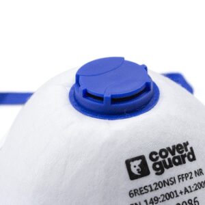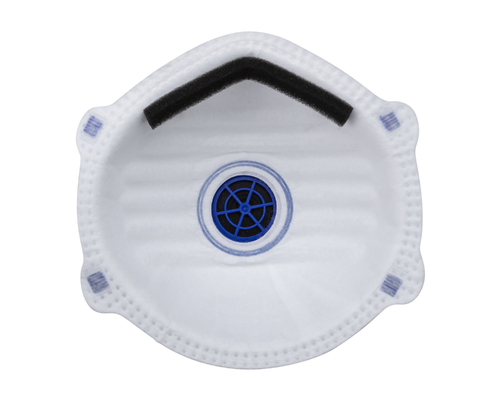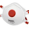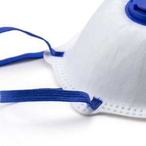 * FFP2 szelepes maszk gyenge mérgek és mérsékelten veszélyes szilárd és folyékony részecskék ellen; nemszőtt polipropilén és poliészter alapanyagból; elektrosztatikus szűrőközeggel