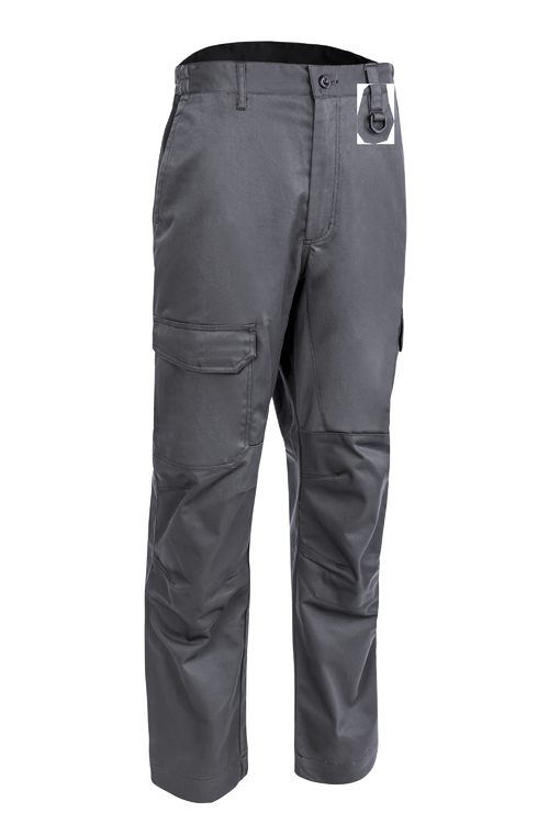 gombbal és cipzárral záródó, gumírozott derék, övbújtatók, megemelt hátrész, sok zseb többféle funkcióval,