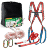 * tartalma: 71035: teljes testhevederzet +71202: 14 mm átmérőjű, 2 m-es, állítható hosszúságú fonott poliamid kötél, két csavaros karabinerrel (71110) + 71450: ideiglenes kikötési eszköz, 44 mm széles és 1 m hosszú piros poliészter hevederszalag 2 acél D gyűrűvel* súlya 330 g, a szakítási ellenállása: 18 kN