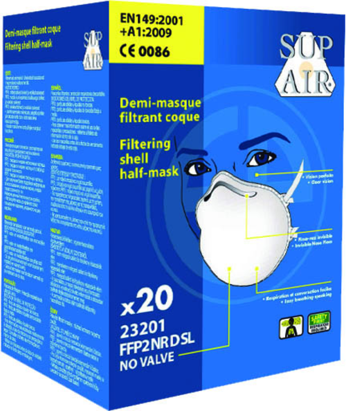 * összehajtható paneles forma, higiénikus: minden darab külön tasakban; nem allergén,felhelyezés két természetes gumipánttal* polietilénbe ágyazott, alaktartó fémszál orrcsipesz, kényelmes felfekvést segítő szivacscsík