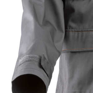 * 245 g/m2 vastag, kopásálló, sávolykötésű anyag, 60% pamut, 40% poliészter,szürke alapszínű ,testbarát alapanyag,a betéttel azonos színű varrásokkal* dzseki fazonú,bikolor kabát tépőzárral állítható mandzsettával