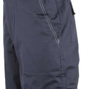 * 245 g/m2 vastag, kopásálló, sávolykötésű anyag, 60% pamut, 40% poliészter ,comfort fit szabású ,sötétkék színű deréknadrág