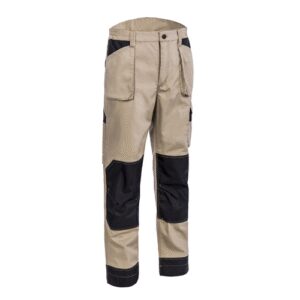 * 240 g/m2 vastag, 35% pamut + 65% poliészter kevertszálas ripstop (továbbszakadás biztos) alapanyagú homokszínű deréknadrág,