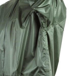 * KABÁT: leragasztott (hegesztett) varrások, rejtett kapucni zsinórral, álló gallér, cipzáros záródás, patenttal állítható mandzsetta, 2 fedett oldalzseb, zsinóros aljrész