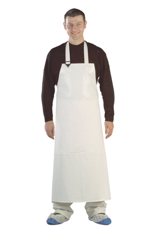 * 90 x 120 cm-es, fehér, vegyszer- és olajálló PU kötény PVC hátrésszel