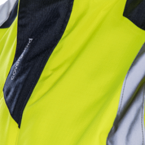 * 5 cm széles fényvisszaverő csíkok – varrott és mikrogyöngyös technológia – 2 – 2 a vállon, testen és a karokon, kontraszt színek a vállon, oldalt és a mandzsettánál