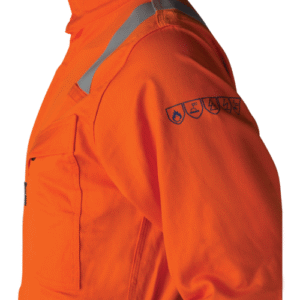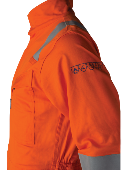 * 300 g/m2 vastag, 78% pamut + 20% poliészter és 2% antisztatikus alapanyagú narancssárga, vegyszer-, láng-, és íválló, antisztatikus, hegesztő védőoverall