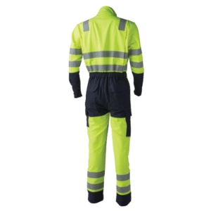 * 300 g/m2 vastag, 78% pamut + 20% poliészter és 2% antisztatikus alapanyagú sárga, vegyszer-, láng-, és íválló, antisztatikus, jó láthatóságot biztosító, hegesztő védőoverall