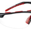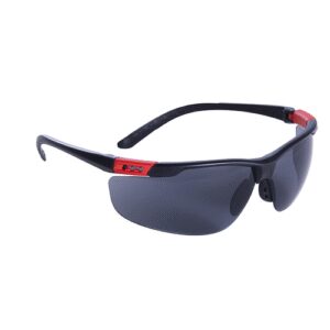 Önbeállító, fekete, kétkomponensű polikarbonát szár, állítható csúszásbiztos orrnyereg és egybeépített oldalvédő